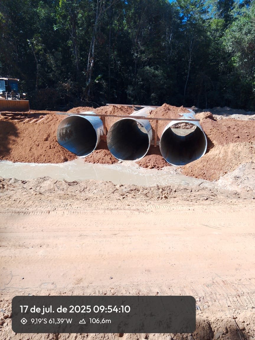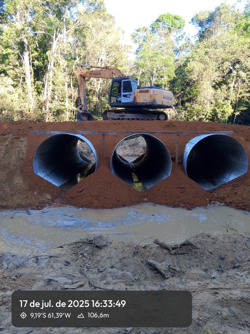 Dando continuidade às ações de infraestrutura viária realizadas pela Associação Três Fronteiras dos Beneficiários da Rodovia MT-206, foi concluída a instalação dos tubos armânicos no Ponto 2, localizado em um trecho estratégico da rodovia que apresentava recorrentes problemas de drenagem e instabilidade do solo.